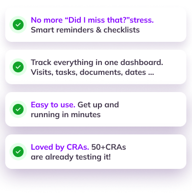 We’re not just building software — we’re giving CRAs and clinical teams the support we always wished we had. Our goal is simple: to eliminate unnecessary admin, so clinical teams can focus on what truly matters: patient safety, data quality, and trial outcomes.